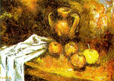 на свили, а од пре неколико година ради у теракоти. Билаје